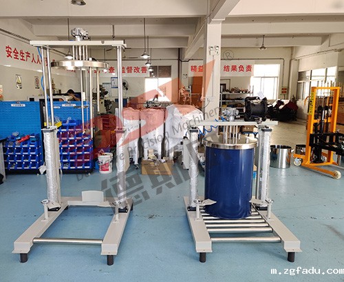 1)搅拌容量:适合于200L以上开口桶,气动升降方式。