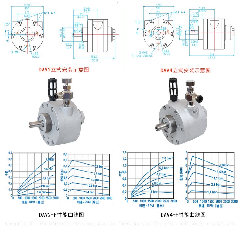 雷竞技newbee官网赞助商叶片式气动马达DAV4-L