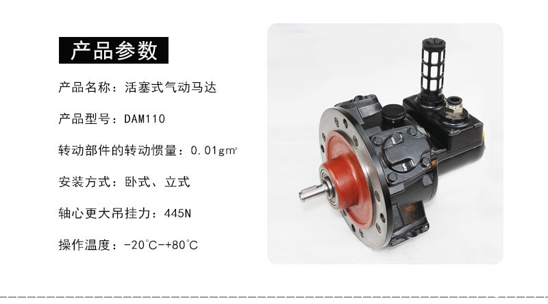 2、可以无级调速,马达的转速通过供气的压力,流量调节。